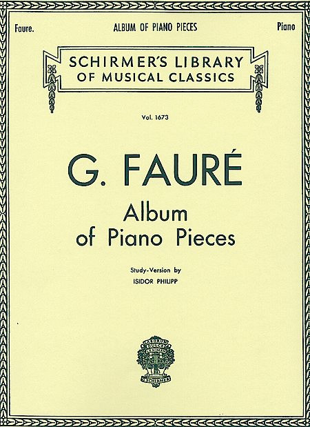Album of Piano Pieces (Piano Solo) ** By Gabriel Faure (1845-1924) ** Edited by I Philipp ** Arranged by Isidor Philipp. For solo piano. Piano Collection. Classical Period. SMP Level 9 (Advanced). Collection. Introductory text (does not include words to the songs). 56 pages. G. Schirmer #LB1673. Published by G. Schirmer.