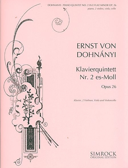 Piano Quintet No. 2, Op. 26. (Score and Parts). By Ernst Von Dohnanyi (1877-1960) and Ern. For Piano, Strings (Set). Boosey & Hawkes Chamber Music. 75 pages. Simrock #M221101334. Published by Simrock.