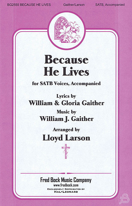 Because He Lives by Bill Gaither. Arranged by Lloyd Larson. For Choral (SATB). Fred Bock Publications. 10 pages. Fred Bock Music Company #BG2555. Published by Fred Bock Music Company.
