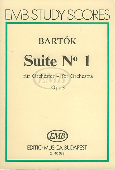 Suite No. 1, Op. 3 for Orchestra. (Score) ** By Bela Bartok (1881-1945). Study Score. EMB. 190 pages. Editio Musica Budapest #Z40033. Published by Editio Musica Budapest.