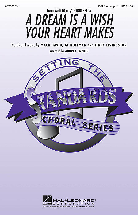 A Dream Is a Wish Your Heart Makes (from Disney's Cinderella) by Mack David, Al Hoffman, Jerry Livingston. Arranged by Audrey Snyder. For Choral (SATB). Disney Choral. 12 pages. Published by Hal Leonard.