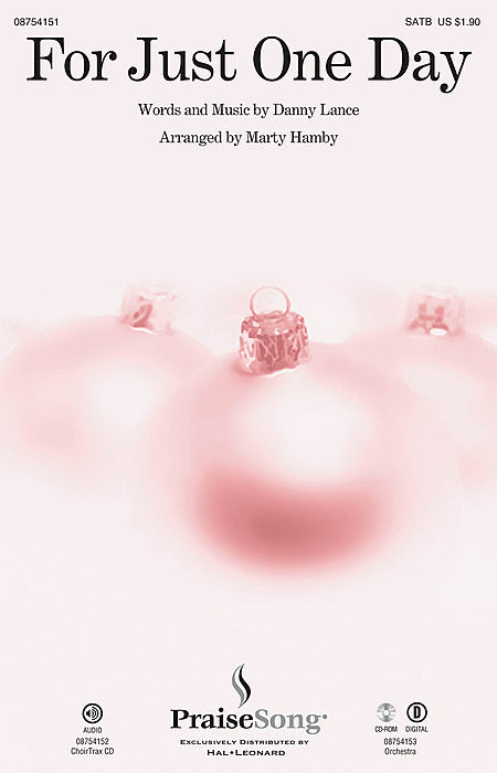 For Just One Day by Danny Lance. Arranged by Marty Hamby. For Choral (SATB). PraiseSong Christmas Series. 12 pages. Published by PraiseSong.