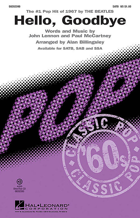 Hello, Goodbye by The Beatles. By John Lennon and Paul McCartney. Arranged by Alan Billingsley. For Choral (SATB). Pop Choral Series. 12 pages. Published by Hal Leonard.