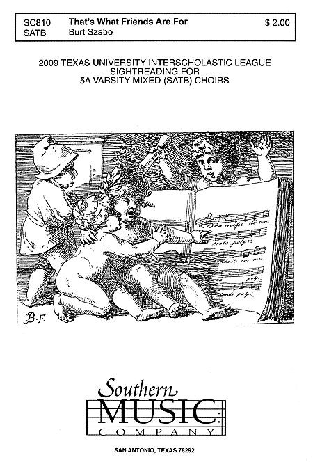 That's What Friends Are For by Dionne Warwick. Arranged by Burt Szabo. For Choral (SATB). Choral, Secular, Octavo. Southern Music. 8 pages. Southern Music Company #SC810. Published by Southern Music Company.